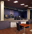 пресс-центр на 50 мест, кинобар, концертный зал. Этот концертный зал можно трансформировать в площадку для банкета или фуршета